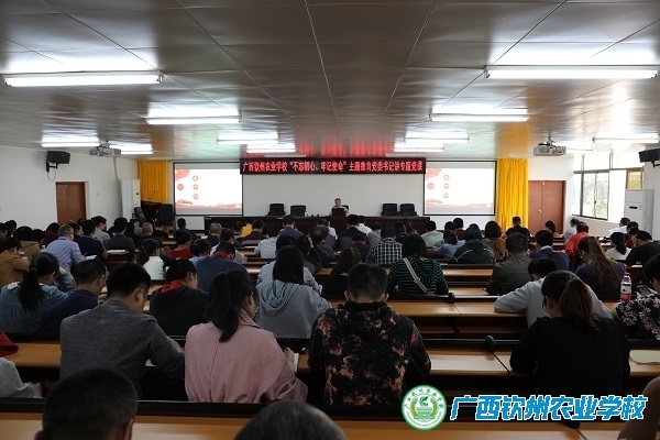 全校共产党员和教职工聆听了党课,钦州市委“不忘初心、牢记使命”主题教育第十二巡回指导组黄永金副组长等到场指导。党员和干部职工通过本次党课,进一步明确了自己的职责担当,表示要不忘教育初心,做“四有好老师”、当“四个引路人”。