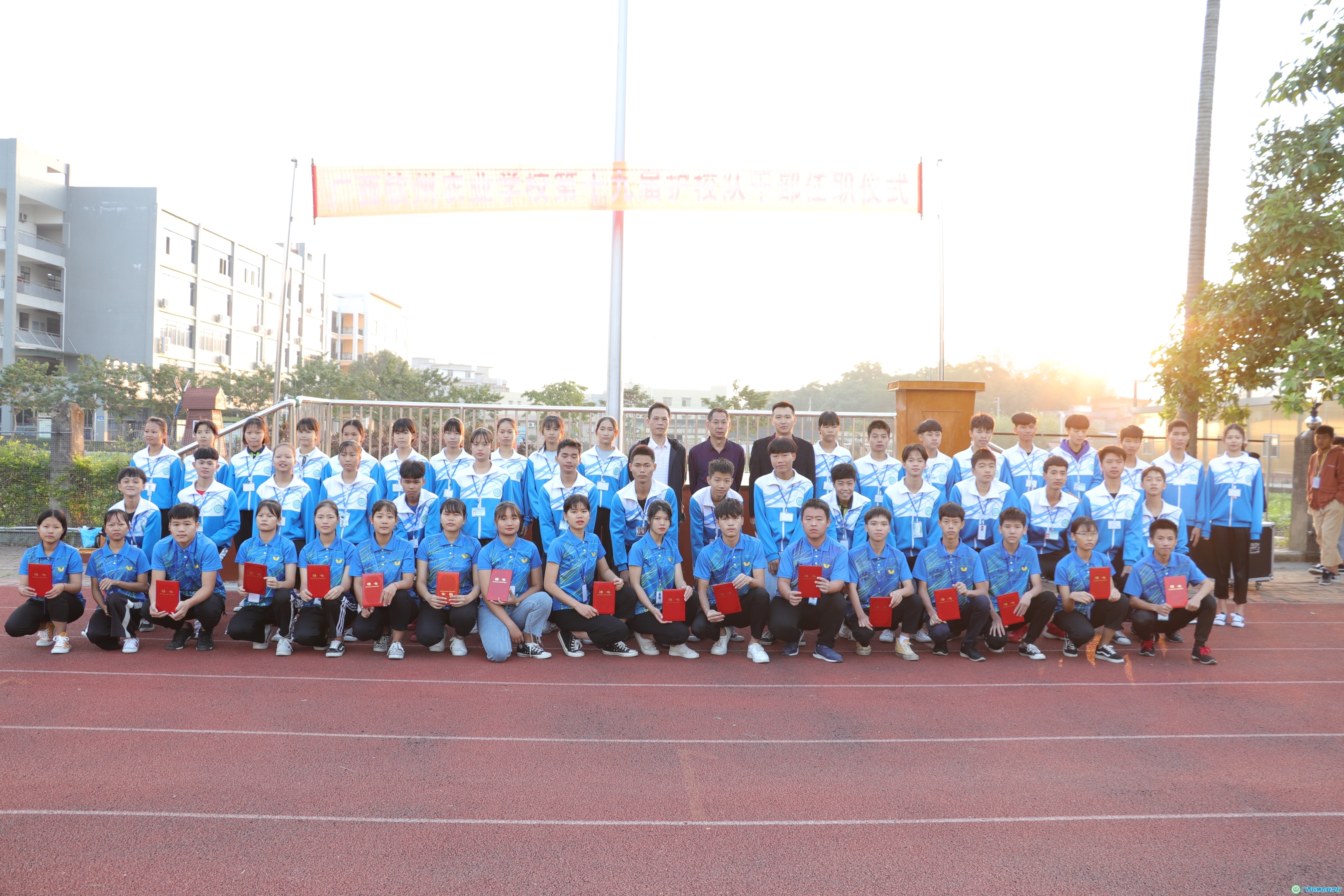 陈明强副校长为新当选的护校队干部授予护校队干部校牌和颁发聘书