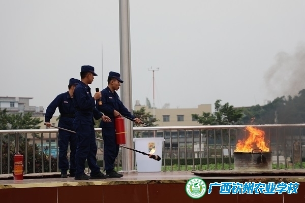 钦南区消防救援大队为师生介绍了灭火器的构造和使用方法