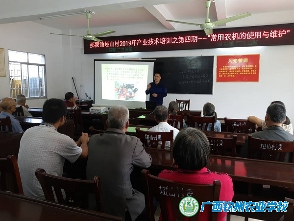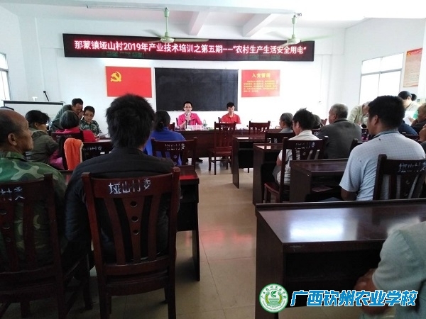 11月13日上午,那蒙镇垭山村委举办2019年第四、第五期产业技术培训,邀请我校理工学部杨祖闹主任和电子专业卢小钢老师为垭山村建档立卡贫困户作实用技术培训。
