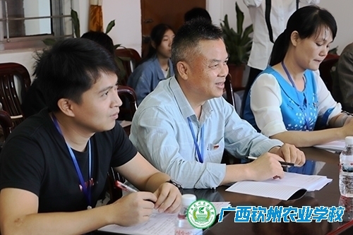 我校邓喜和副校长向北部湾职业技术学校王增祥副校长讲解