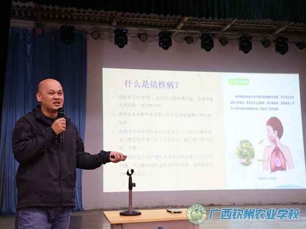 为加强学校结核病防治工作,普及预防结核病知识,提高防病能力,2019年11月26日晚,我校在大礼堂举行了一次健康教育暨结核病防控知识讲座,由欧阳健校医主讲。