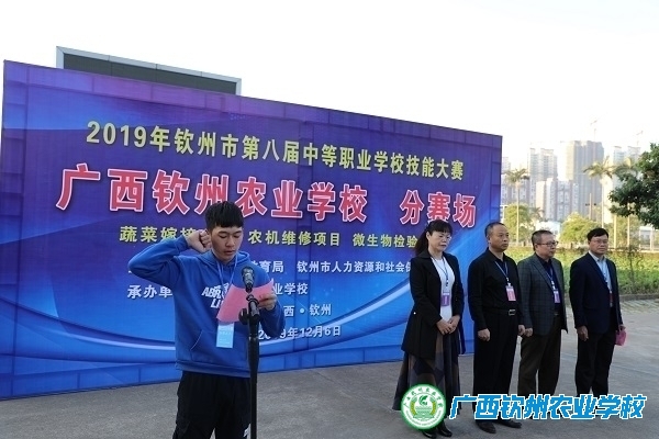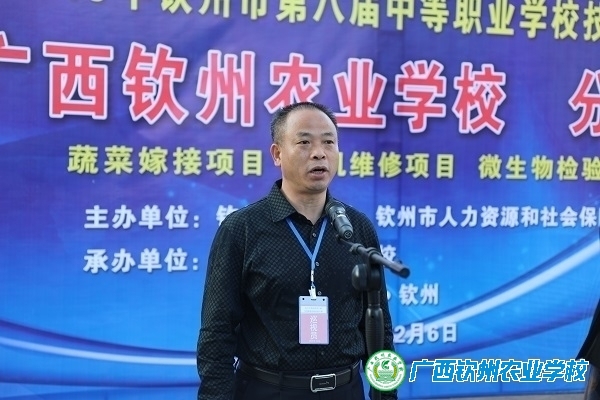 12月7日上午,由钦州市教育局、钦州市人力资源和社会保障局主办、我校承办的2019年钦州市第八届中等职业学校技能大赛疏菜嫁接、农机维修和微生物检验赛项比赛在我校隆重开幕,开幕式由我校现代农业学部主任莫莉莉主持,出席开幕式的领导有钦州市教育局罗玲监督员、钦州市职业教育中心工会主席米东荣、我校的伍国樑校长和覃效敏副校长。我校覃效敏副校长致欢迎辞,衷心感谢钦州市教育局、钦州市人力资源和社会保障局、各参赛职业学校的关心和支持;我校伍国樑校长宣布2019年钦州市第八届中等职业学校技能大赛广西钦州农业学校分赛场开赛。