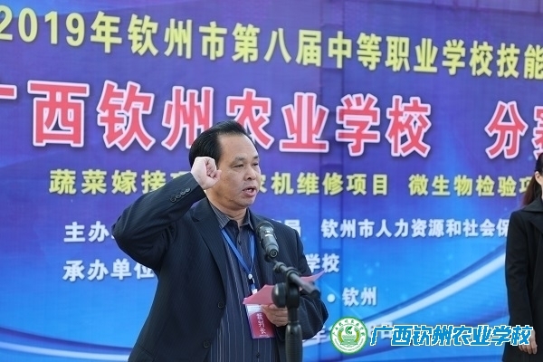 伍国樑校长宣布2019年钦州市第八届中等职业学校技能大赛广西钦州农业学校分赛场开赛