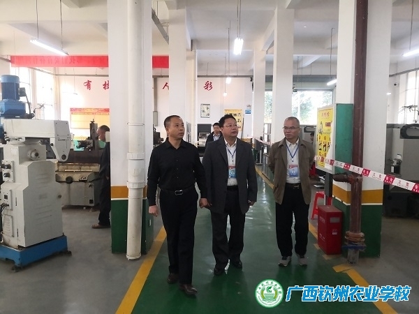 北部湾职业技术学校王增祥副校长(左二)陪同我校伍国樑校长(右一)参观考察比赛现场