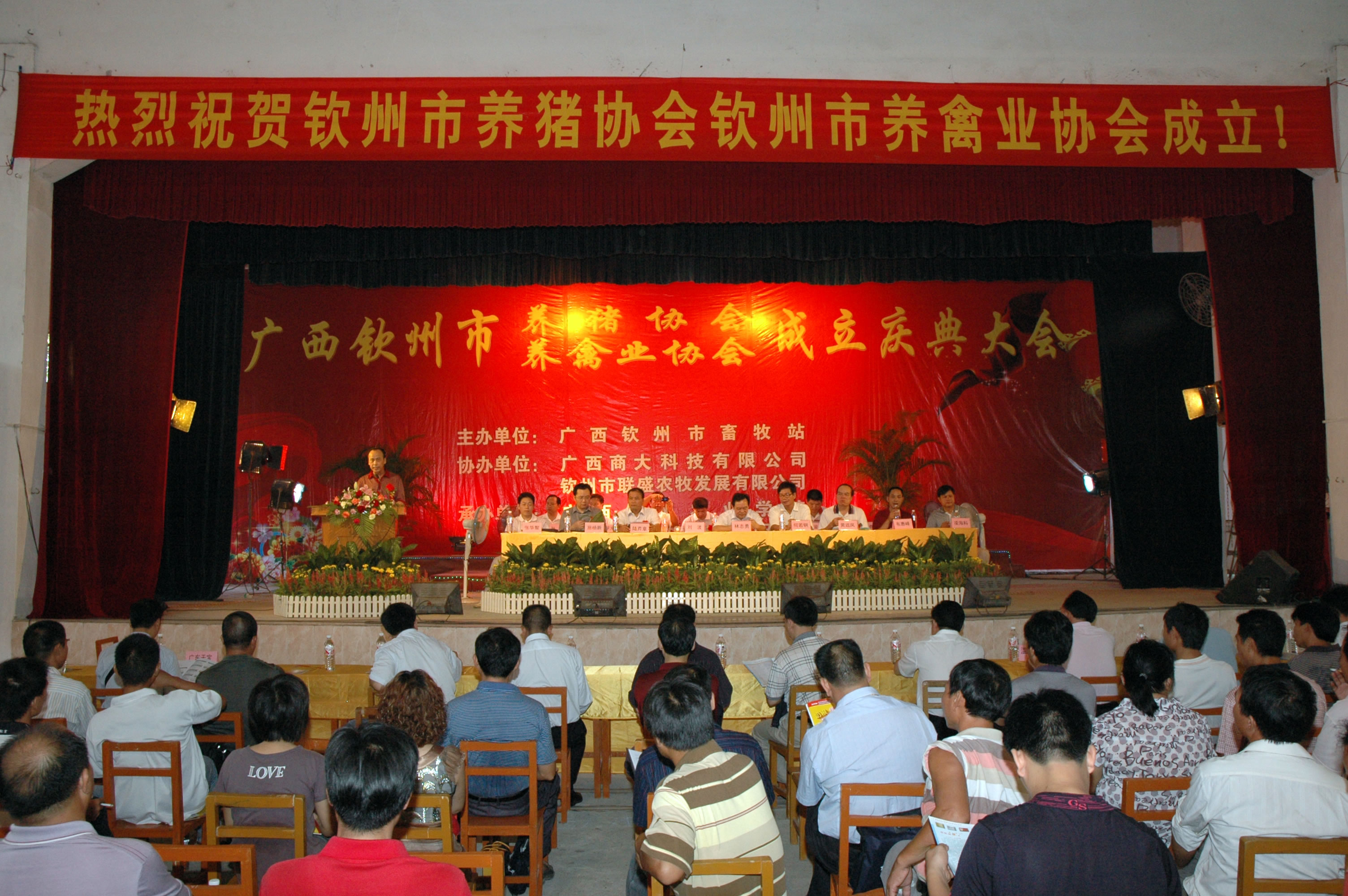 协会成立大会由钦州市畜牧站主办、广西商大科技有限公司和钦州市联盛农牧发展有限公司协办、广西钦州农业学校承办。广西区农业厅、区水产畜牧兽医局、钦州市人民政府、钦州市水产畜牧兽医局、钦州市动物疫病预防控制中心等对协会的成立表示祝贺。