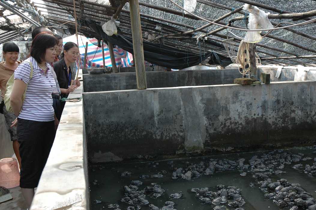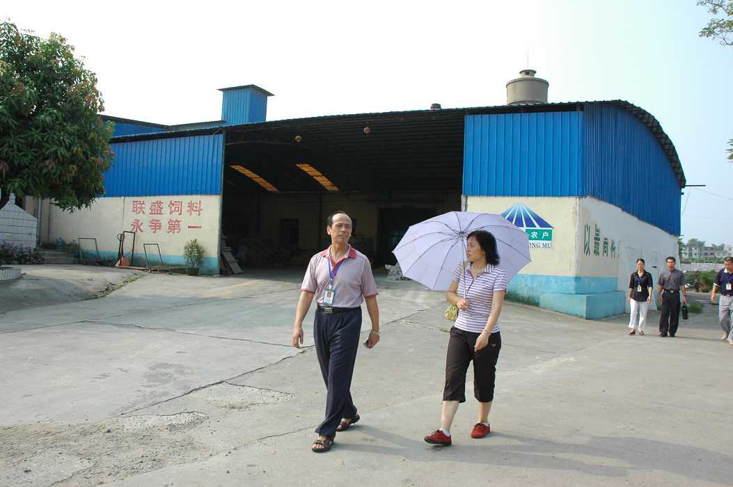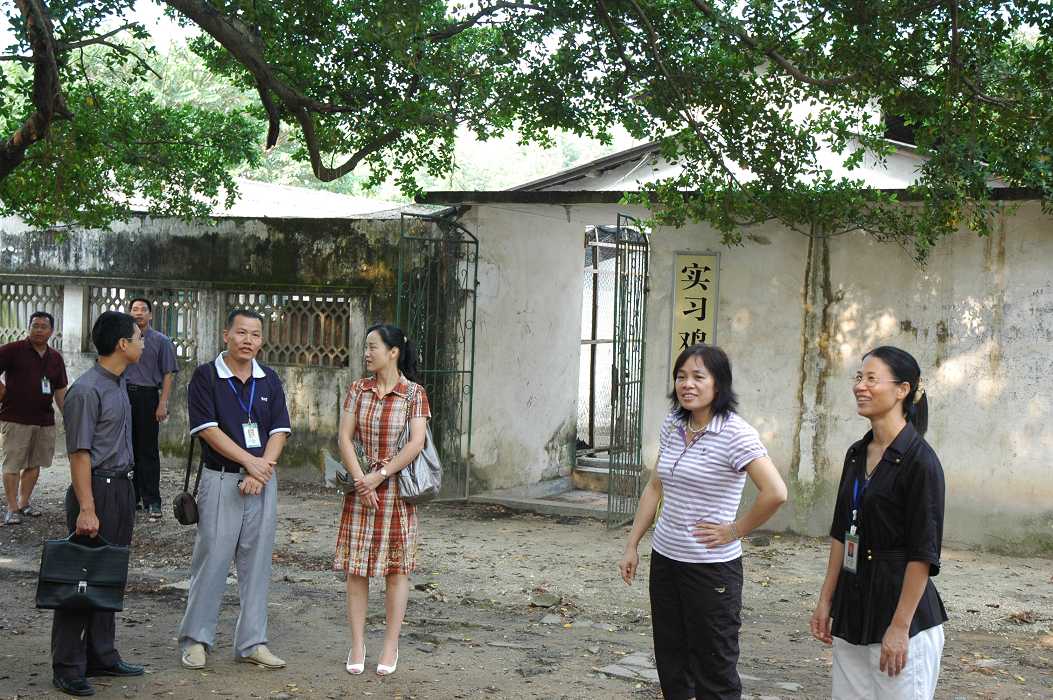 高崇敏副处长(左二)在校长刘波(左一)陪同下检查副食品生产基地