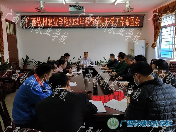 2020年春季学期复学复课在即,为了确保学生返校复学工作落到实处,有效做好学校疫情防控工作,保障学生疫情期间的安全健康,4月24日上午,我校在第一会议室召开2020年春季学期开学工作布置会。会议由学校党委书记、校长伍国樑主持,相关科室负责人到场参会。会议学习了自治区农业厅农村厅对学校开学计划的批复精神,进一步完善复学工作方案,并对工作方案的贯彻落实进行部署。
