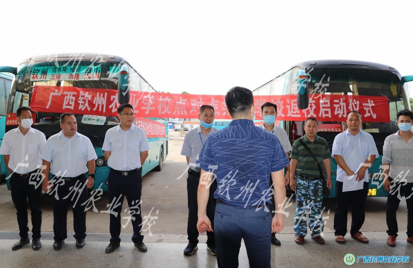 为降低外地生源返校途中感染的风险,减少学生与其他人员接触,学校联合广西钦州泰禾运输集团有限责任公司派出专车到灵山县、钦北区学生人数相对集中的乡镇接学生返校。每辆车都安排有一位老师到站点检测学生体温,护送学生顺利平安到校。我校学生科组织班主任提前精准排查学生的居住地址,安排好学生乘车时间和地点,实行点对点返校。