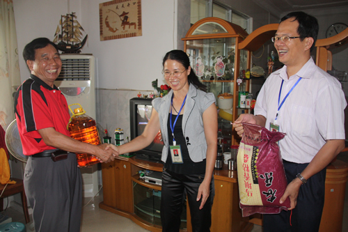 同一天,学校还组织了以工会陆武昌主席为组长的慰问组前往钦南区尖山镇排榜村慰问了10名五保户;在此之前的10月20日,陆主席还驱车前往浦北县张黄镇慰问离休干部赖世纲同志。