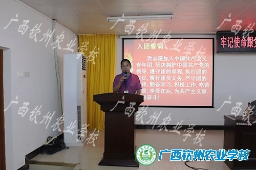 随后,老团员代表蒙婷和陈明强副校长先后致祝词,蒙婷同学代表老团员向新团员送去祝福与嘱托,陈明强副校长对新团员表示祝贺,并提出了几点要求:新团员要爱学习、爱国,要团结一致、学会感恩。新老团员们认真倾听、学习,受益匪浅。
