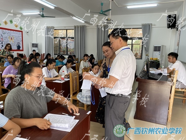 考试期间,广西农业-092号特有工种职业技能鉴定站黄秋园、钦州市人力资源和社会保障局副局长李富轩到我校进行了巡视指导,对我校职业技能工种鉴定考试工作给予了充分肯定,对考场的组织管理、考场纪律、监考老师监考状态和考生考试状态表示满意。