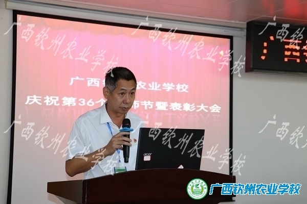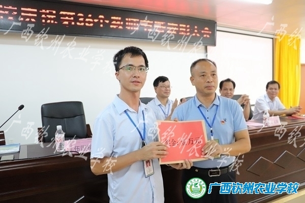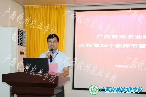 覃效敏副校长宣读自治区农业农村厅及学校的慰问信,传达自治区农业农村厅党组和学校党政领导班子对全体教职员工的节日问候。陈明强副校长宣读学校2019-2020学年先进教育工作者表彰决定和“十佳”优秀教师、“十佳”优秀班主任表彰决定。随后,主席台就座的领导为在2019-2020学年度中荣获表彰、在校内外科研、各项比赛中获奖项以及荣获学校创新奖的教职工进行颁奖。