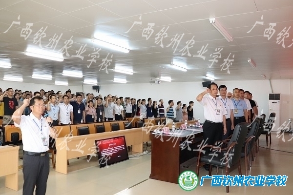 大会首先举行宣誓仪式。誓言有声,育人无形。学校办公室李从庆主任带领全体教职工庄重宣誓,以此表达了全体教职员工对教育事业的无限忠诚,以及争当“有理想信念、有道德情操、有扎实学识、有仁爱之心”的好老师的坚定决心。