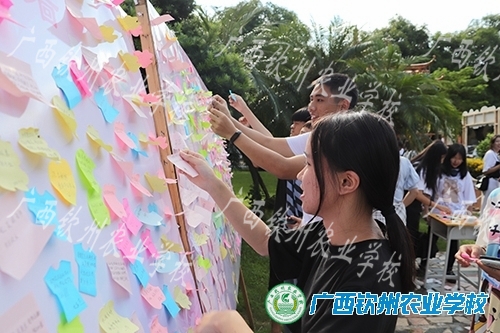 办公楼前,感恩亭旁,同学们用留言的方式表达对老师节日的祝福,留言墙上贴满了五颜六色的卡片,引来老师同学驻足观看。
