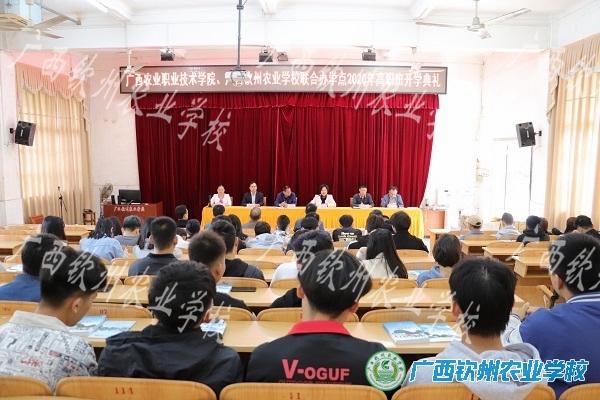 10月20日上午,广西农业职业技术学院广西钦州农业学校联合办学点2020级新生开学典礼在我校电化教室举行。广西农业职业技术学院陆琦副院长、我校陈明强副校长、广西农业职业技术学院农艺与园林系孙奇副主任、动物科学技术系陆有飞副主任、食品工程技术系黄春秋副主任出席典礼,我校相关科室负责人、全体2020级高职班新生参加典礼。