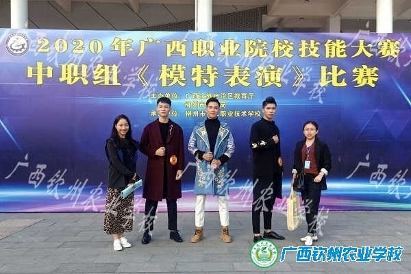 模特表演赛项选手与指导老师合影(左三为二等奖获得者,加工181班刘有辉同学)