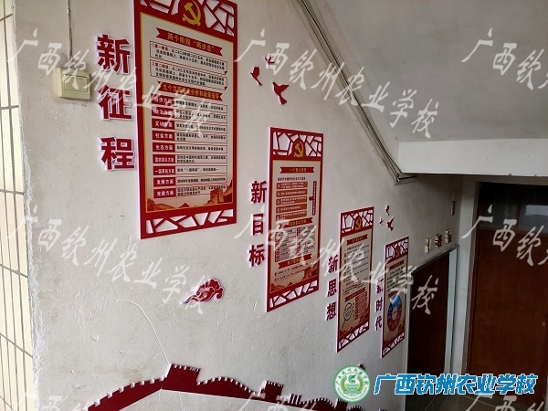 为深入学习贯彻习近平新时代中国特色社会主义思想和党的十九大精神,进一步加强党建文化建设,营造浓厚的党建工作氛围,坚持“党建+文化”引领,擦亮全国文明校园特色文化品牌,学校党委办公室创新党建工作宣传载体,充分利用办公楼楼梯、楼层走廊的闲置空间,精心打造党建文化长廊,营造出“处处是课堂、时时受教育、天天受熏陶”的浓厚氛围。