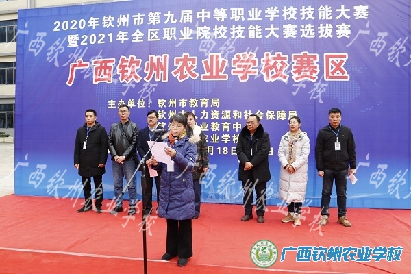 开幕式上,我校覃效敏副校长致欢迎辞,参赛选手代表和裁判员代表进行了发言。覃效敏副校长宣布2020年钦州市第九届中等职业学校技能大赛广西钦州农业学校赛区开赛。