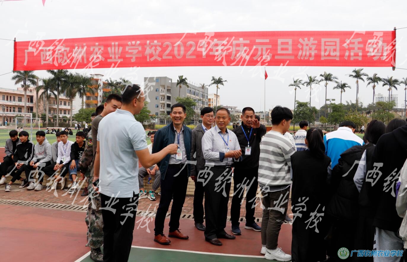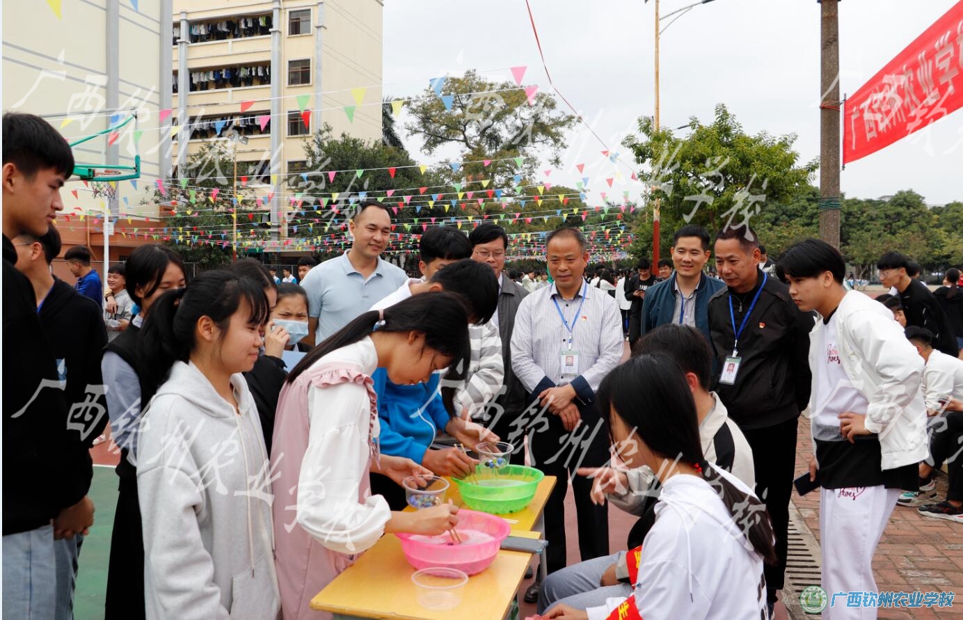 为欢度2021年元旦,活跃校园文化生活,让全校学生度过一个充实而又有意义的节日,12月29日下午,我校学生科组织全体学生在南面篮球场举行2021年庆元旦游园活动。伍国樑校长、陈明强副校长、覃效敏副校长等学校领导亲临现场和同学们欢度佳节。