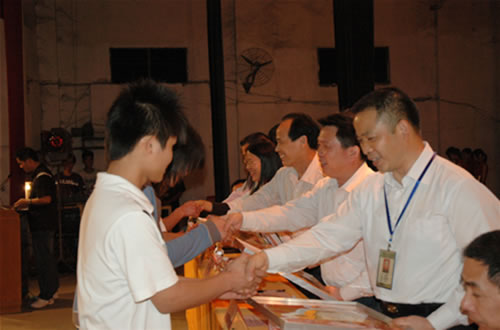 表彰大会现场伍国樑副校长作了总结讲话郑修营科长作学生工作总结和宣读学校表彰决定学校领导为获奖的班集体和获奖的同学颁奖先进团支部领奖代表治安先进班领奖代表先进班集体领奖代表优秀学生代表李载伟同学发言优秀学生干部代表刘艳兰同学发言优秀班主任代表吴明老师发言领导嘉宾和优秀班主任合影留念