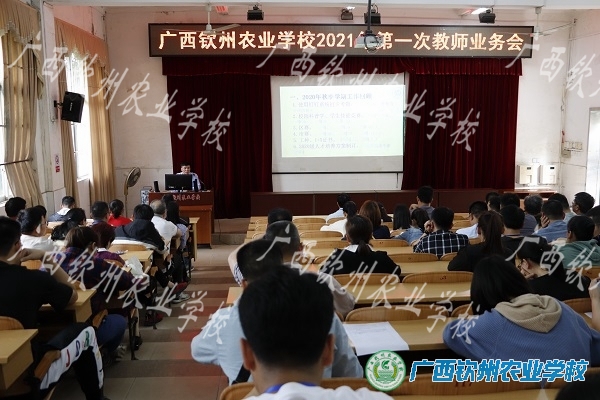 会上,教务科负责人叶颜春副科长对2020年秋季学期教学工作进行了回顾,对本学期主要教学工作进行了布置,本学期各项工作比较多,希望教师们能按照相关要求做好教学工作。覃效敏副校长就贯彻执行上级《钦州市深化新时代学校思想政治理论课改革创新的工作措施》、《钦州市深化新时代教育辅导体制机制改革实施方案》、《钦州市全面加强新时代大中小学劳动教育实施方案》作了说明,对我校专业建设和教学诊改工作进行了布置,希望全体教师学习习近平新时代中国特色社会主义思想,树立正确的历史观、民族观、国家观、文化观,积极践行社会主义核心价值观,完善立德树人体制机制,为办好新时代人民满意的教育而努力。