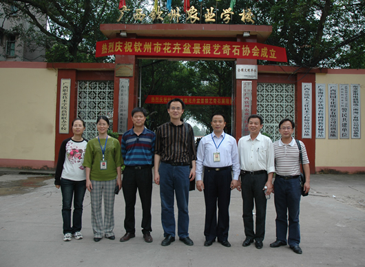 图为在钦州市花卉盆景根艺奇石协会成立盛典于我校举行之际,