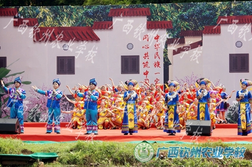 为深入学习贯彻习近平新时代中国特色社会主义思想,培育和践行社会主义核心价值观,庆祝中国共产党成立100周年,4月14日上午,由中共钦州市委员会、钦州市人民政府主办,中共钦州市委员会宣传部、中共钦州市委员会统战部、钦州市文化广电体育和旅游局、中共钦州市钦北区委员会、钦北区人民政府承办的2021年钦州市“歌飞三月三·情满八寨沟”壮乡嘉年华系列活动在钦北区贵台镇八寨原乡拉开帷幕,我校学前教育专业谭倩倩、韦虹萍、张小鹏、杨彩萍4位老师和60名同学参加了大型实景文艺演出节目的编排及演出。