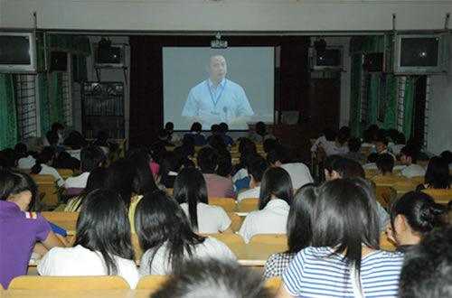 动员大会现场伍国樑副校长在会上作了讲话郑修营科长解读“文明风采”竞赛活动的实施方案同学们收看“动员大会”电视现场直播