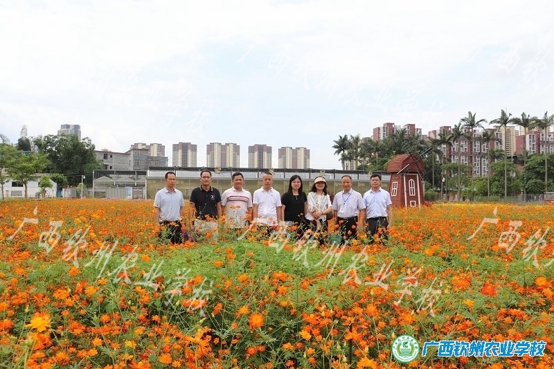 考察团与学校领导在花田合影
