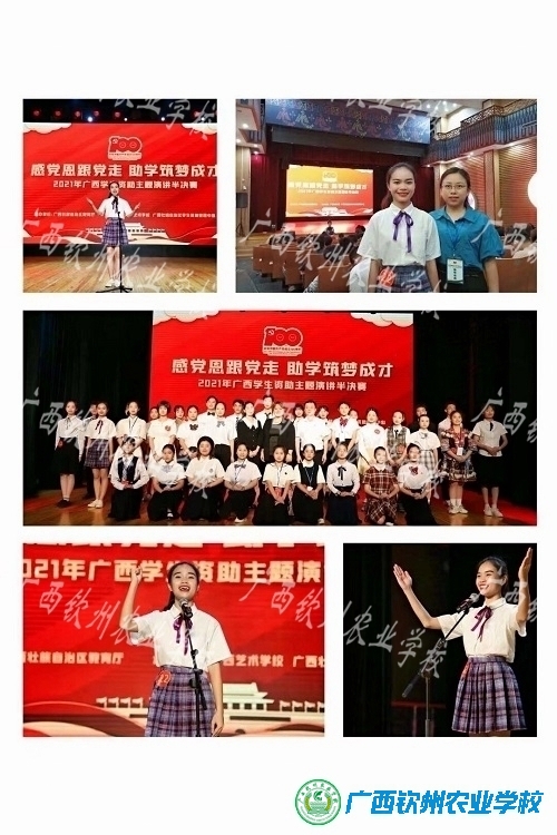 为庆祝建党100周年,培育受助学生的爱党爱国情感和感恩意识,进一步推进学生资助政策宣传工作,自治区教育厅于5月17日至18日在南宁、百色两个赛区开展“感党恩、听党话、跟党走 助学筑梦成才”演讲比赛。我校由农晓琼、黄筱彦老师共同指导的学前教育192班李永红同学代表学校参加南宁赛区中职组比赛。本次比赛全区共有56名选手参赛,共同争夺18个决赛资格。经过激烈的角逐,李永红同学们成功晋级决赛。
