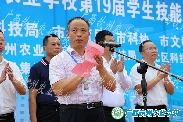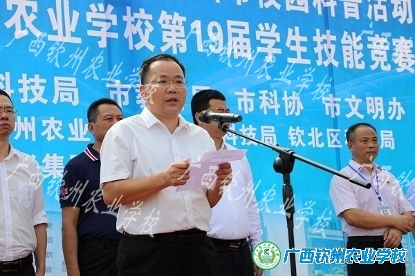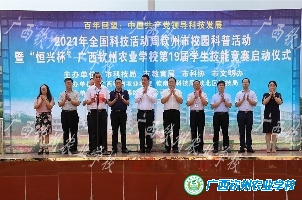为庆祝中国共产党成立100周年,推动科技创新成果和科学普及活动惠及于民,同时展示我校办学成果。5月21日上午,2021年全国科技活动周钦州市校园科普活动暨“恒兴杯”广西钦州农业学校第19届学生技能竞赛启动仪式在我校隆重举行。钦州市委常委、副市长姚永福,钦州市科技局党组成员、二级调研员施扬新,自治区农业农村厅科教处副处长凌飞展、钦州市科协副主席周路、市科普联席会议成员单位的领导、广东省恒兴集团有限公司领导出席启动仪式。我校党委书记、校长伍国樑致欢迎词。我校全体师生参加启动仪式。本次活动邀请了钦州市部分中学师生1600多人前来观摩学习。启动仪式由我校副校长陈明强主持。