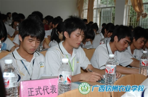 学生代表大会现场 左1(李红调研员)左2(伍国樑副校长)左3(覃一静副校长) 伍国樑副校长在会上作了讲话 学生科郑修营科长作候选人情况介绍 学生会朱翠婷同学主持会议 学生会主席古中方作第二十四届学生会工作报告 参与竞选演讲的部分候选人