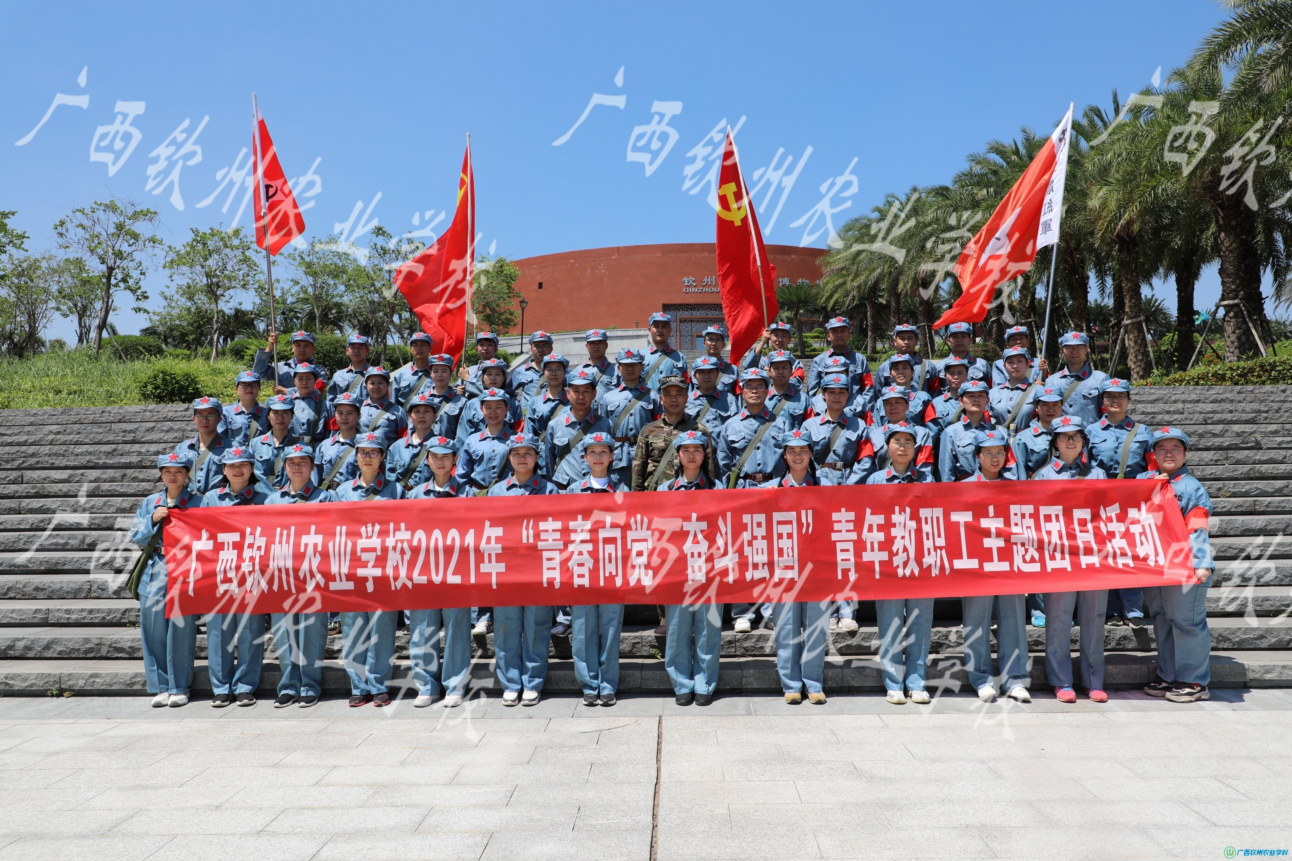 为推进我校党史学习教育常态化,把党史学习教育引向深入,取得扎实成效,培养广大青年教职工爱党、爱国的情怀,弘扬长征精神,传承红色基因,进一步培育和坚定青年教职工的理想信念,以良好的精神面貌迎接中国共产党成立100周年,6月6日上午,学校团委在钦州市青少年红色教育活动基地开展“青春向党 奋斗强国”青年教职工主题团日活动。学校党委书记、校长伍国樑,党委副书记、副校长覃效敏,纪委书记、副校长陈明强以及50多名青年教职工参加了活动。