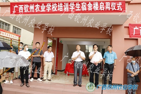 经过一年三个月的施工,我校培训学生宿舍楼圆满竣工,即将投入使用。8月12日早上,在新宿舍楼前举行启用仪式。党委书记、校长伍国樑宣布培训宿舍楼启用,副校长陈明强介绍宿舍楼建设情况,在钦教职工参加启用仪式。