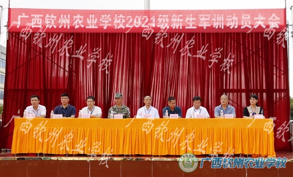 2021级新生军训动员大会于8月30日上午在学校大操场如期举行,学校党委书记、校长伍国樑,纪委书记、副校长陈明强、钦南区人民武装部干事郑合华、秦用伟出席大会。我校各相关科室负责人和钦南区人民武装部40名教官和2021级全体同学们,20级高职班共1800多名同学参加了动员大会。