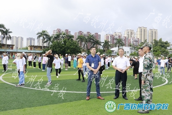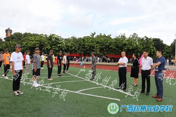 早上8:30,学校党委书记、校长伍国樑同志,纪委书记、副校长陈明强同志在学生科科长邓业斌同志、钦州市钦南区人民武装部干部郑合华同志的陪同下来到训练场,亲切地看望教官、班主任(指导员)和2021级全体新同学们。