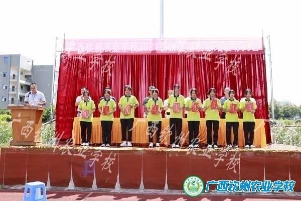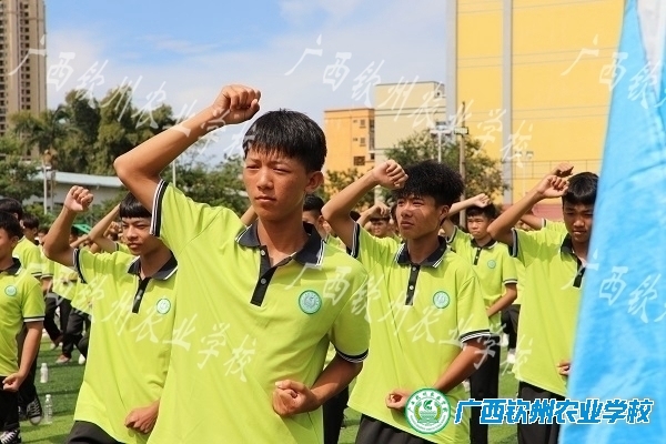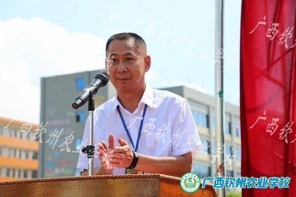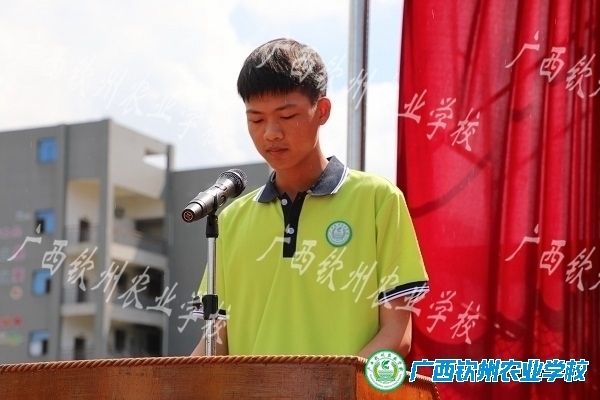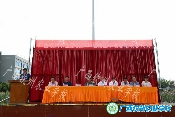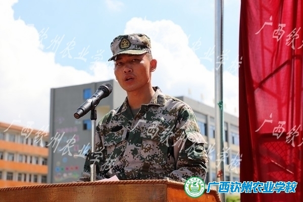 新生军训代表—宠物水产211班劳宗德作军训感受发言,钦南区人民武装部领导郑合华同志作总结。