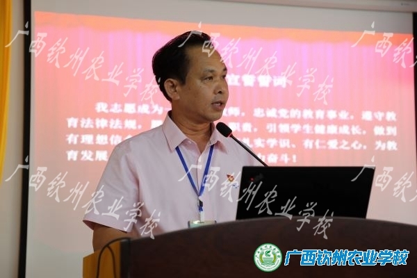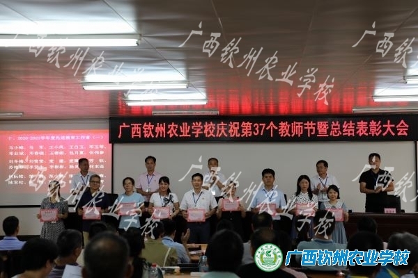 大会在雄壮的国歌声中拉开帷幕。党委委员、校办主任李从庆带领全体教职工重温教师誓词。党委委员、党办主任胡礼荣宣读自治区农业农村厅及学校的慰问信,传达自治区农业农村厅党组和学校党委对全体教职员工的节日问候。陈明强副校长宣读学校2020-2021学年度先进教育工作者表彰决定。随后,主席台就座的领导为一年来在教学、科研、学生工作、技能竞赛等方面取得突出成绩的教师代表、先进教育工作者颁奖。