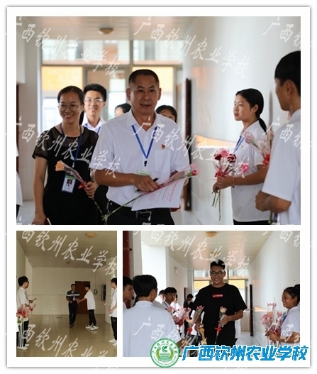 团委干部为老师们献花