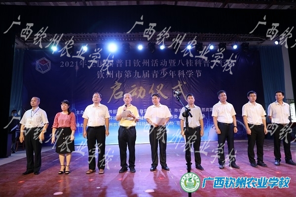 9月17日上午,2021年全国科普日钦州活动暨八桂科普大行动和钦州市第九届青少年科学节启动仪式在我校举行。钦州市委宣传部副部长、新闻出版局局长黄鼎军、钦州市科协党组书记黄岳联、市教育局副局长卢红青、市科技局二级调研员施扬新、我校党委书记、校长伍国樑以及市水利局、市自然资源局、市卫生健康委、市应急管理局等领导出席启动仪式。仪式由钦州市科协副主席邹军主持。我校部分班级学生、钦州市第三中学初中部部分学生参加仪式。