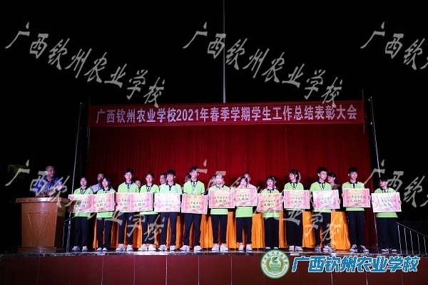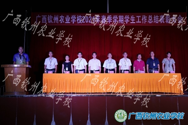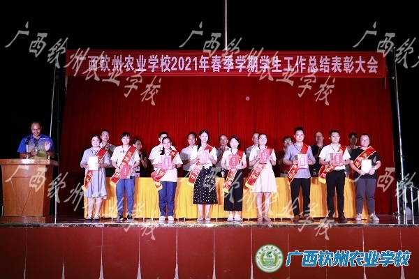 学生科科长邓业斌宣读《广西钦州农业学校关于表彰2021年春季学期学生工作先进集体及先进个人的决定》。