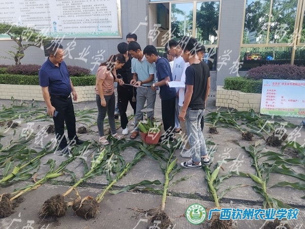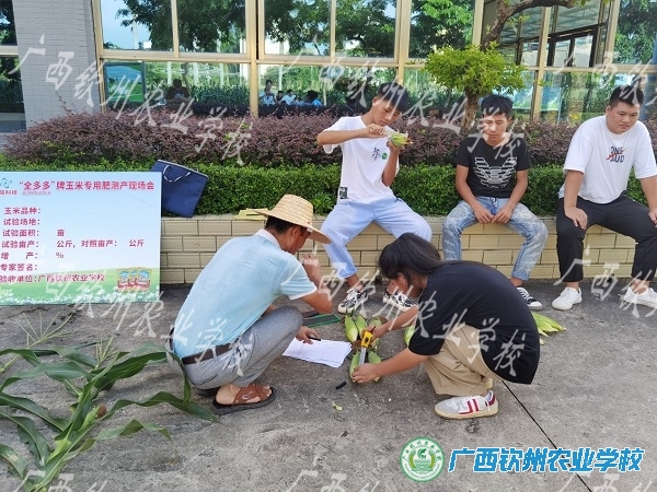 9月18日,中秋佳节来临前,学校的大田也洋溢着收获的喜悦。今天一大早,同学们就忙开了,有的在掰玉米,有的连根铲出一株玉米,有的在量玉米的穗长……原来,这是植保、农艺专业的同学在林贝琳、周致光、梁秀芳老师的带领下进行玉米测产实训。这次玉米田间实验是我校与广西首信生物科技有限公司产学研校企合作开展以来第二个科学实验项目,本次实验种植的是彩甜糯823玉米品种,采用广西首信生物科技有限公司生产的“全多多”牌有机无机复混肥与常规肥进行对比实验。老师们精心设计、细心安排,同学们将株高、穗位高、结穗率、穗长等数据一一认真测量,仔细记录,下一步,将对数据进行对比研究,得出结论。