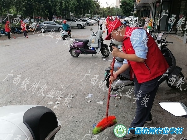 为弘扬倡导文明健康的生活方式和志愿服务精神,优化街道环境,10月20日下午,我校第一党支部根据钦州市委教育工委《2021年钦州市教育系统“创建文明城·教育争先锋”系列志愿服务活动方案》的通知要求,结合“我为群众办实事”实践活动,组织支部党员发扬优良传统,开展环境卫生清洁、到店铺发文明创城小知识、清除“牛皮藓”、对不文明行为进行劝导等志愿服务活动。