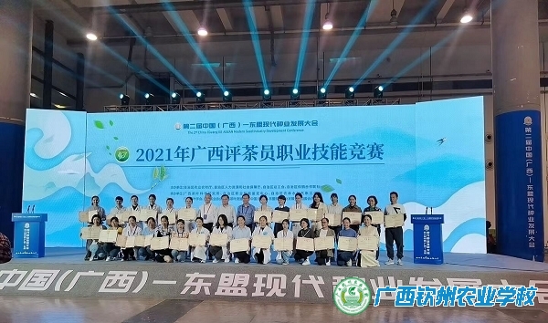 10月28日至30日,2021年广西评茶员职业技能竞赛在冬日明媚、茶香四溢的南宁国际会展中心举行。赛程三天,依托第二届中国(广西)-东盟现代种业发展大会,赛场精彩纷呈,我校选派杨灵灵老师参加了此次评茶员职业技能竞赛。经过激烈角逐,杨灵灵老师沉着应战,一举夺得教师组金奖,被授予“广西技术能手”荣誉称号。此次竞赛,增强了我校农产品保鲜与加工特色课程建设的力量,提高了教师的教学水平,促进了文化与技能的交流。