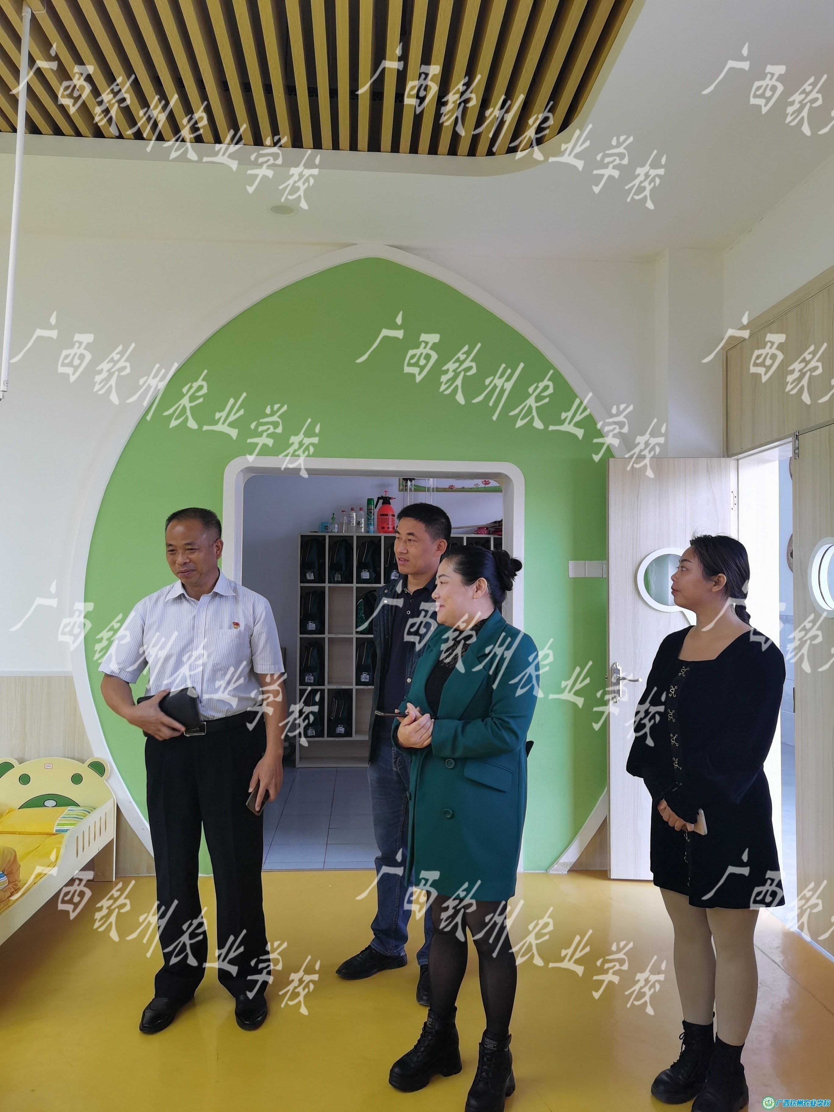 为更好服务地方经济建设,推进校企深度合作,2021年12月15日上午,我校伍国樑校长带领学前教育专业谭倩倩、王兆艳、袁晓慧一行四人专程前往钦州市浦北县金浦新区幼儿园走访调研。