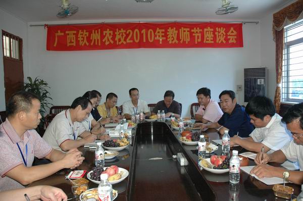 座谈会上,李日卫组长代表市委、市政府和市教育局向教师们致以了节日亲切的问候,充分肯定了我校在教育教学工作中取得的成绩,高度赞扬了教师们甘为人梯的奉献精神,对教师们的辛勤劳动和为教育事业所做的贡献表示崇高敬意,并对我校的发展提出了希望和建议:要进一步学习、贯彻《国家中长期教育改革和发展规划纲要》及自治区、钦州市的实施细则,结合校情,科学发展,做大做强中等职业教育;要进一步加强师资队伍建设,重视教师培训学习,努力提高师资水平;在专业设置、校企合作等方面做出适当调整,更好地发挥自身优势,切实为钦州市地方经济发展服务。李组长还代表市教育局给我校送上了慰问金。