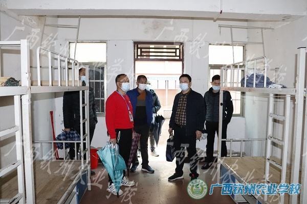 2月17日,钦州市教育局安信科、职成科有关领导深入我校,检查指导春季开学工作。党委书记、校长伍国樑,纪委书记、副校长陈明强陪同检查。