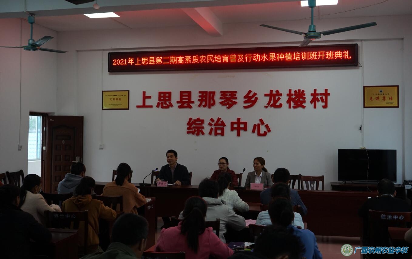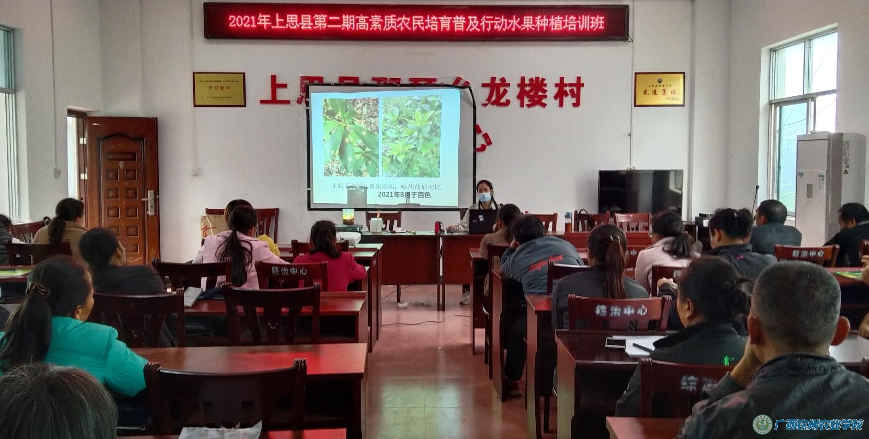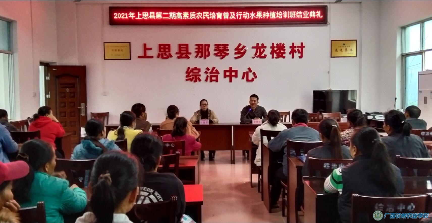 “发展特色产业、推动乡村振兴”在行动,2021年11月17日,我校在上思县举办的2021年高素质农民培育普及行动工作圆满收官。根据上思县产业发展需要和乡村建设人才培训需求,此次培训同时开展技能服务型和经营管理型高素质农民共计4期培训班,分别安排在上思县的思阳镇玉学村、那琴乡龙楼村、在妙镇那苗村和在妙镇在妙村,历时半个月,对上思县合作社带头人、农村创新创业青年和产业扶贫带头人等200多人从畜牧养殖和水果种植两个专业分别开展系统的培训。培训班采取“送教下乡、重实训”的培训模式,以实地观摩、现场授课方式进行。为确保培训取得实在效果,上思县农业农村局认真组织遴选了培训学员,对培训过程实行全程现场指导,我校严格执行培训计划,每期培训班都建立班主任制度、学员培训考勤制度、满意度调查制度及培训台账制度等。学员一致表示要把培训中所学到的新知识、新技能,真正运用到发展产业当中,努力做好先进生产技术的推动者,助力全县农村经济社会发展再上新台阶。