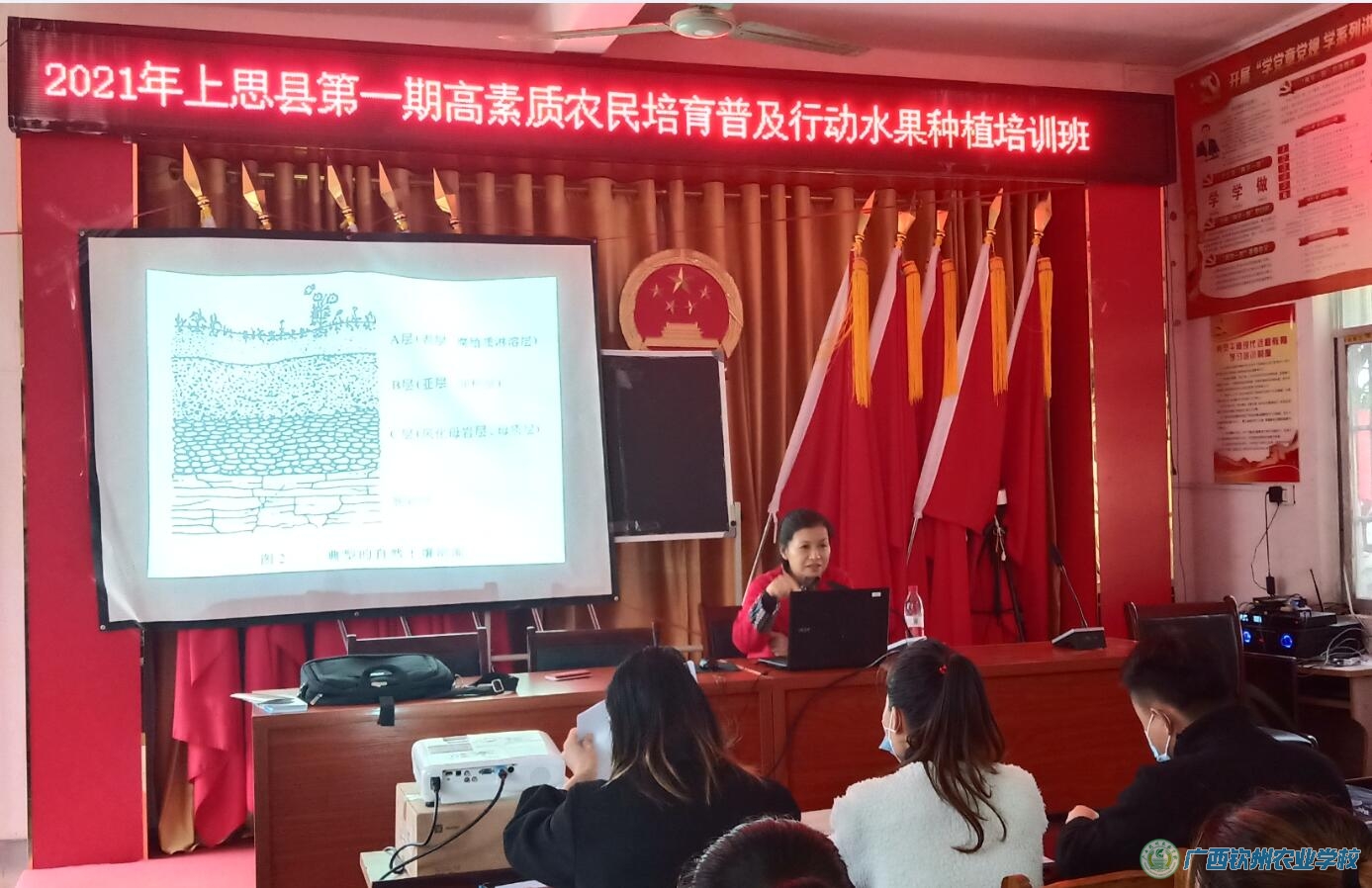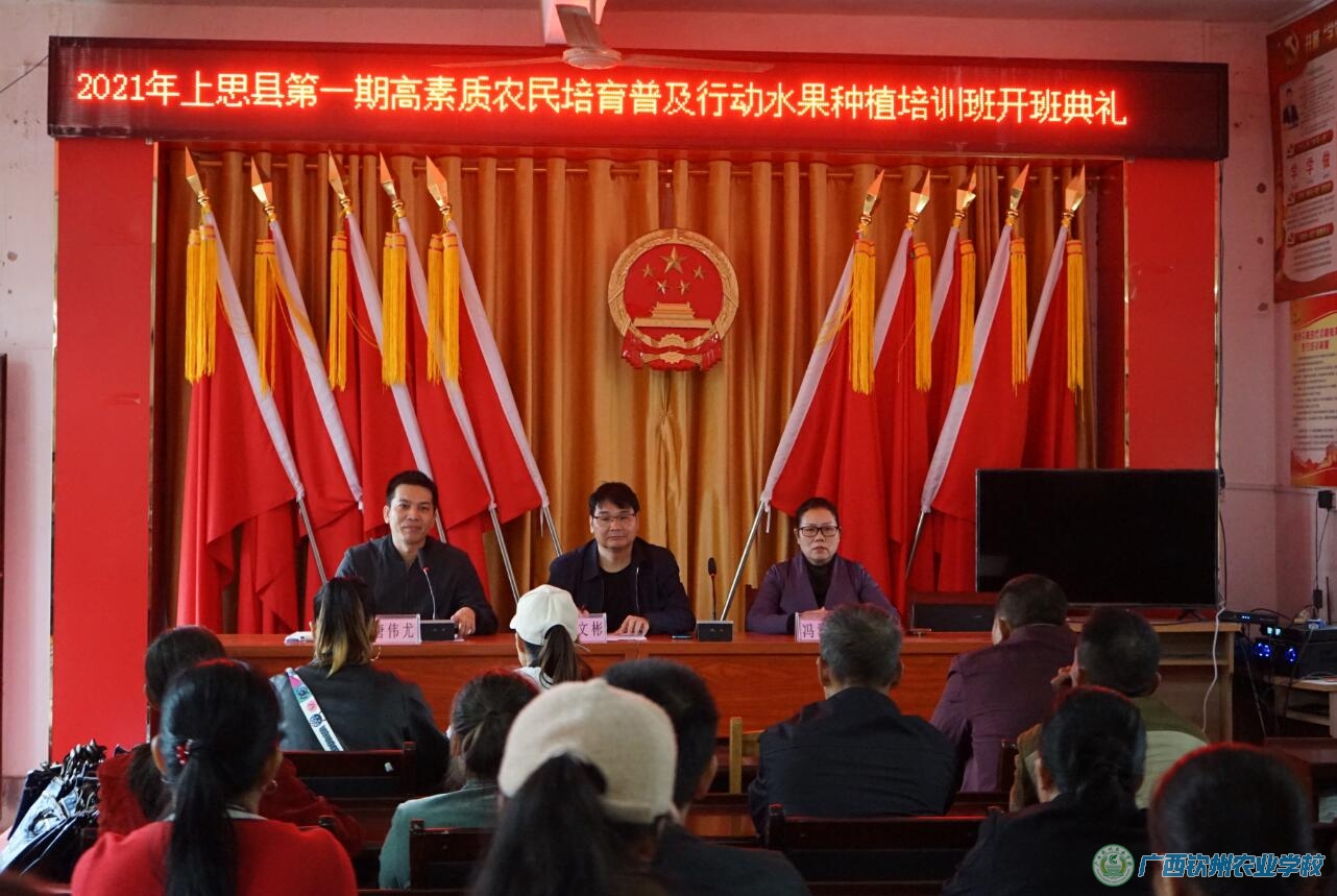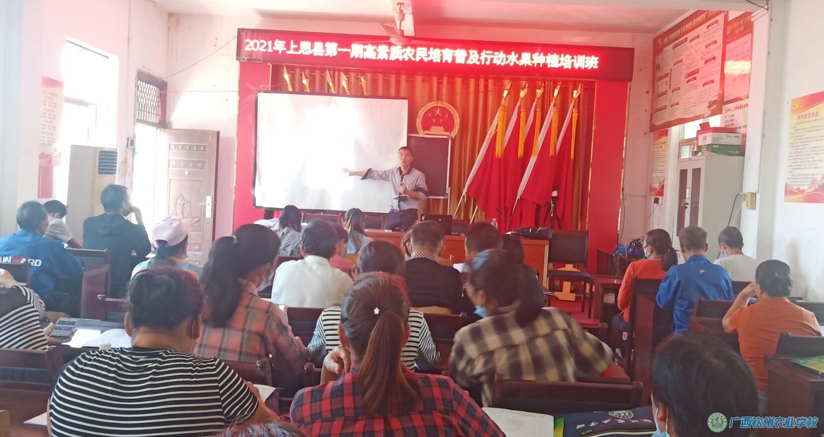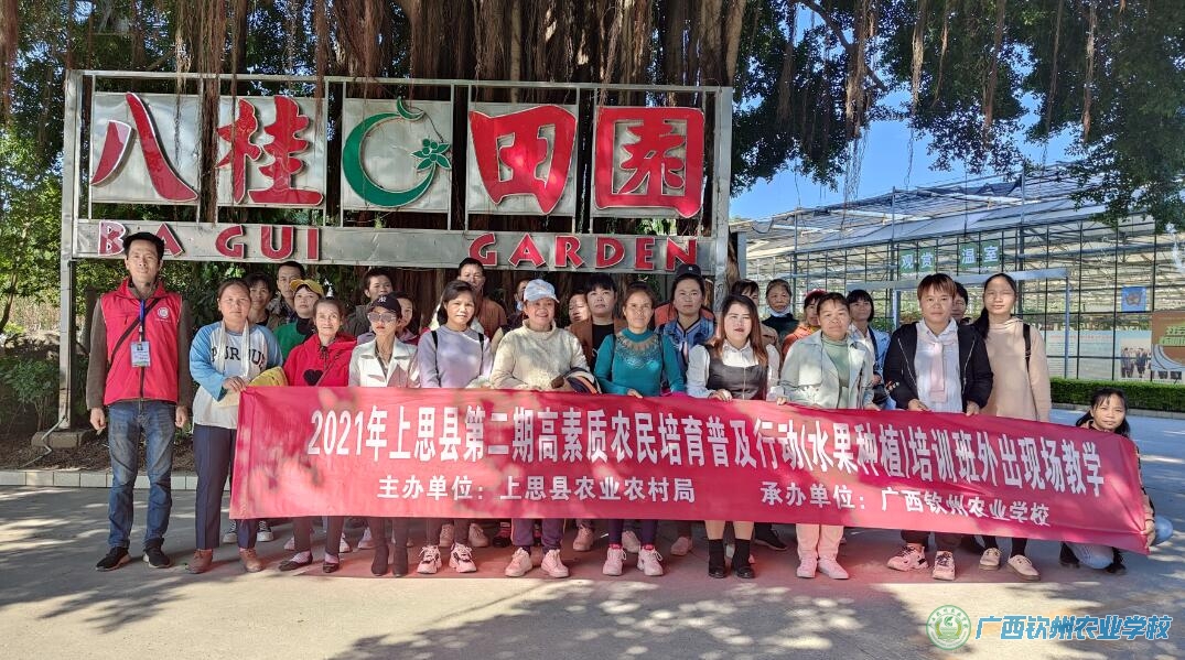 “发展特色产业、推动乡村振兴”在行动,2021年11月17日,我校在上思县举办的2021年高素质农民培育普及行动工作圆满收官。根据上思县产业发展需要和乡村建设人才培训需求,此次培训同时开展技能服务型和经营管理型高素质农民共计4期培训班,分别安排在上思县的思阳镇玉学村、那琴乡龙楼村、在妙镇那苗村和在妙镇在妙村,历时半个月,对上思县合作社带头人、农村创新创业青年和产业扶贫带头人等200多人从畜牧养殖和水果种植两个专业分别开展系统的培训。培训班采取“送教下乡、重实训”的培训模式,以实地观摩、现场授课方式进行。为确保培训取得实在效果,上思县农业农村局认真组织遴选了培训学员,对培训过程实行全程现场指导,我校严格执行培训计划,每期培训班都建立班主任制度、学员培训考勤制度、满意度调查制度及培训台账制度等。学员一致表示要把培训中所学到的新知识、新技能,真正运用到发展产业当中,努力做好先进生产技术的推动者,助力全县农村经济社会发展再上新台阶。